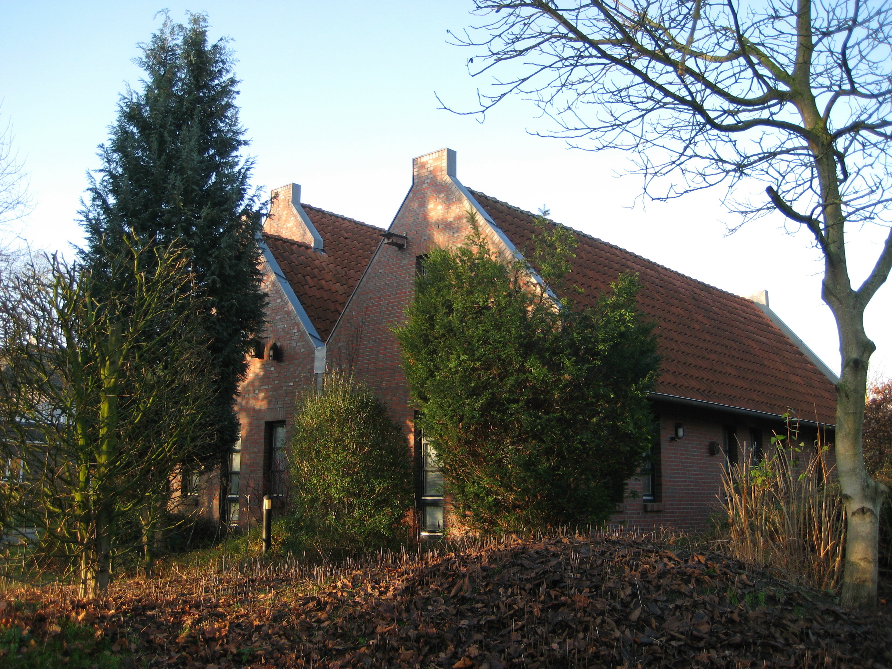 Rück-Seitansicht mit Blick auf die Dachkehle zwischen den beiden Dächern in welcher sich der Fensterausbau für ein helles Inneres befindet.